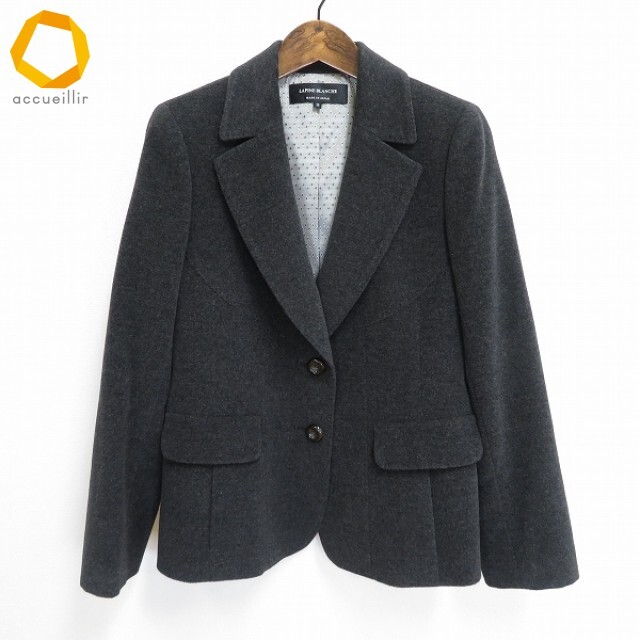 - #w ラピーヌブランシュ LAPINE BLANCHE ジャケット 38 ダークグレー テーラード アンゴラ混 ウール混 日本製 レディース [952684] k01