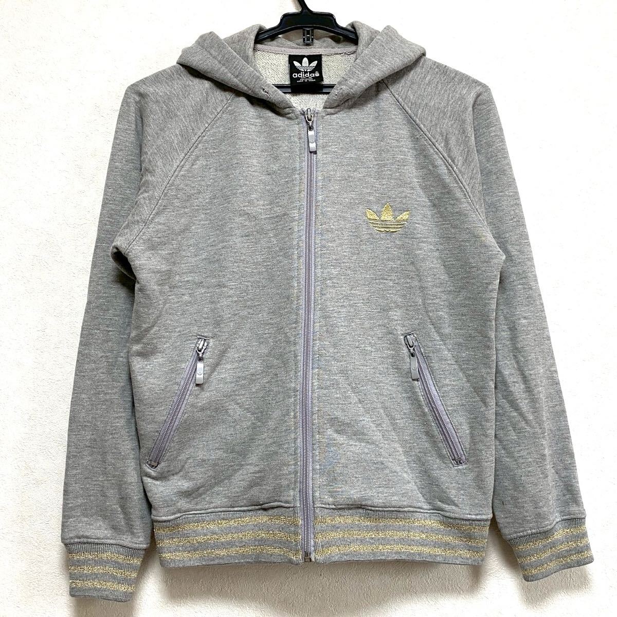 - 【人気】adidas アディダス オリジナルス パーカー M グレー 金刺繍 トレフォイル レディース フーディー ジップアップ 灰色 スウェット