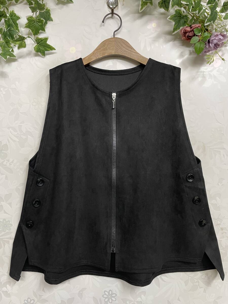 - ★新品 スエード風 柔らかタッチ AラインベストM~L(BK)