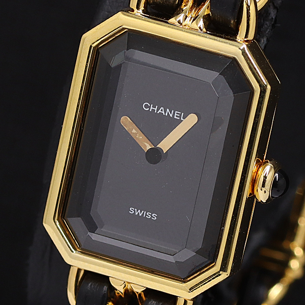 > 1円 保付 稼働 シャネル プルミエールS H0001 QZ ブラック文字盤 レディース腕時計 0093610 10MGT MST