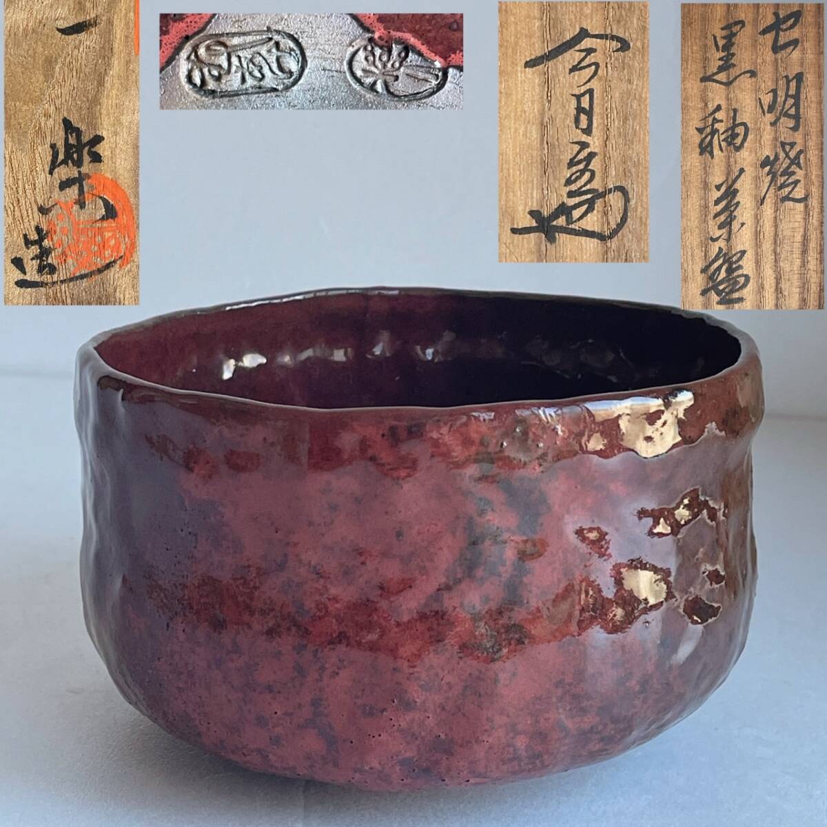 - 【和美】淡々斎書付 黒井一楽 虫明焼 黒釉 茶碗 共箱 茶道具 本物保証