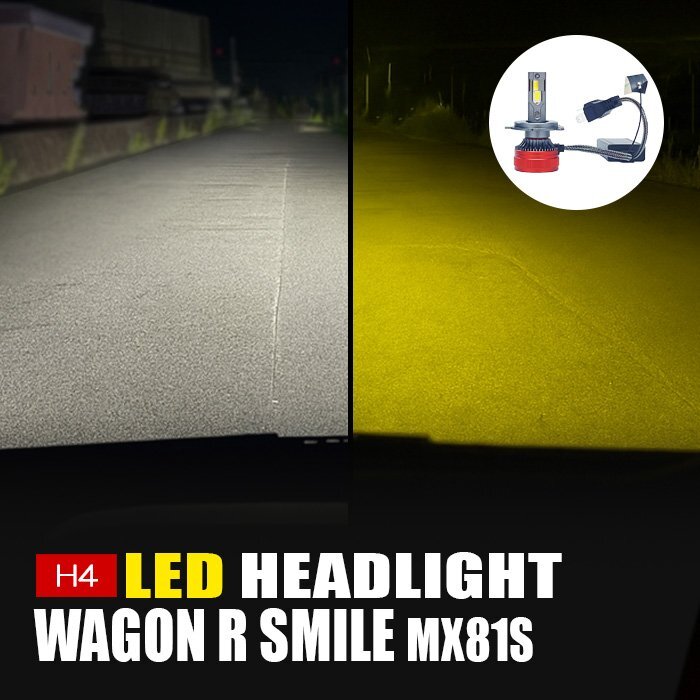 - ワゴンRスマイル LED ヘッドライト H4 ロービーム 3000K 8000K カメレオン 色温度調整 アプリ 連動 高輝度 イエロー ホワイト LEDヘッドラ