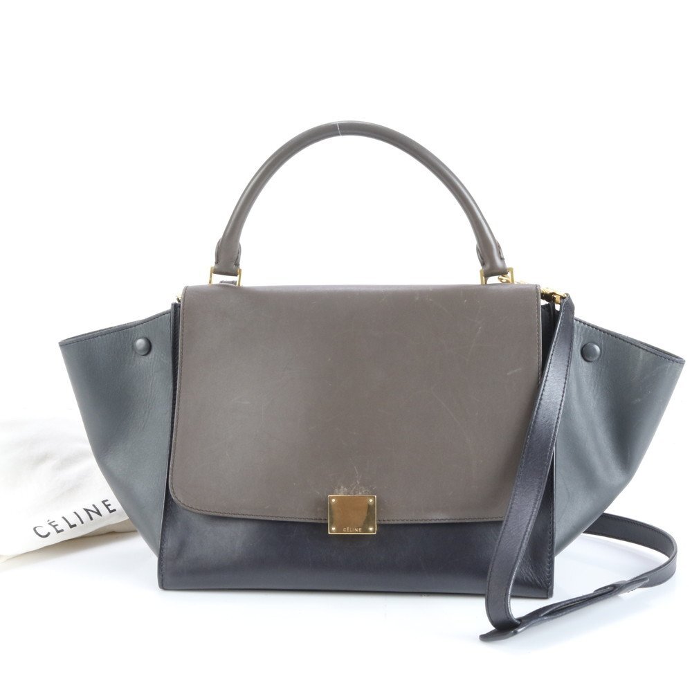 > 1円■極美品■セリーヌ■トラペーズ スモール レザー 2WAY ショルダーバッグ 肩掛け トート ハンド ゴールド 金具 レディース RRE CT42-10