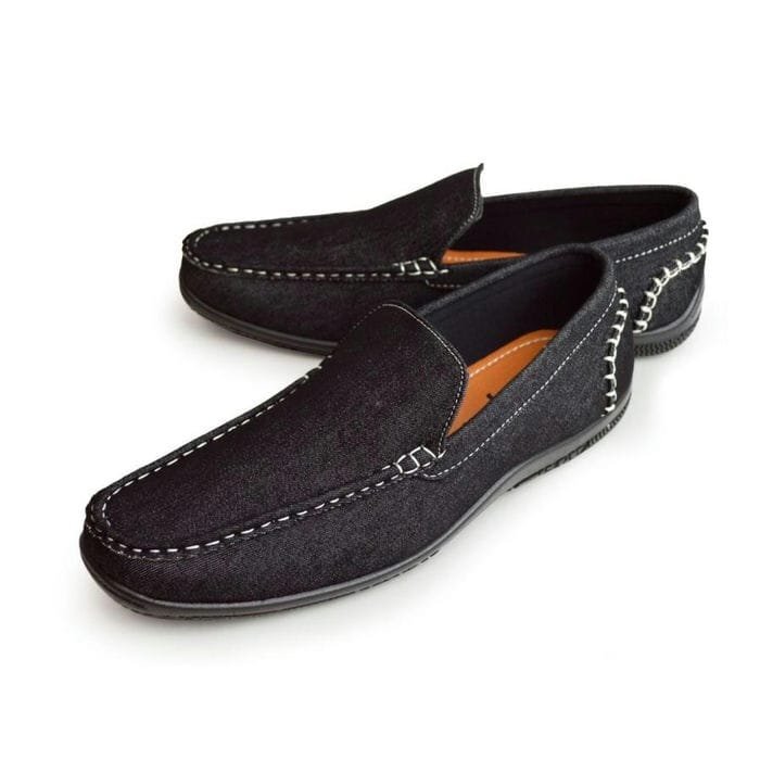 - 新品■29~29.5cm ドライビングシューズ 軽量 防滑 メンズ スリッポン デニム 車 運転 靴 ローファー カジュアル ステッチ【エコ配送】