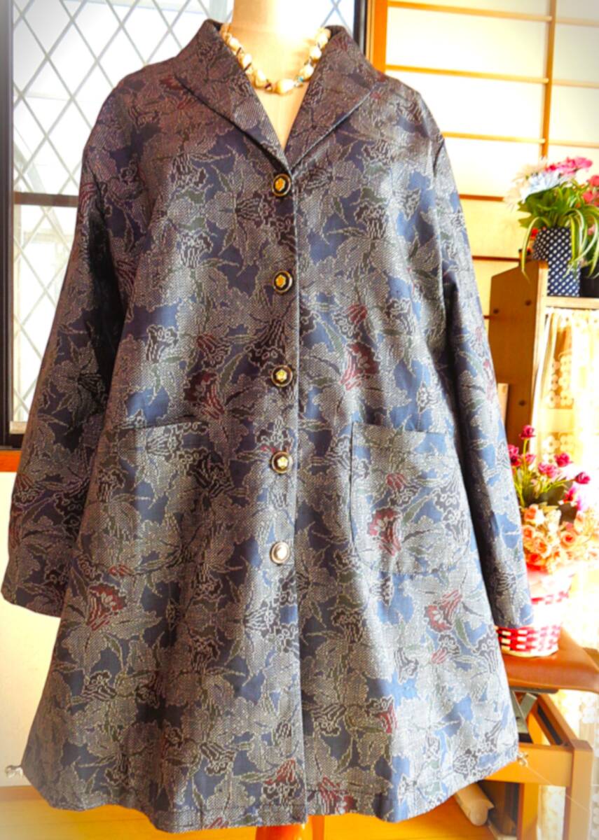 - ◆◆着物リメイク◆◆大島ジャケット風コート◆◆小型へちま襟♪~3L大き目◆◆