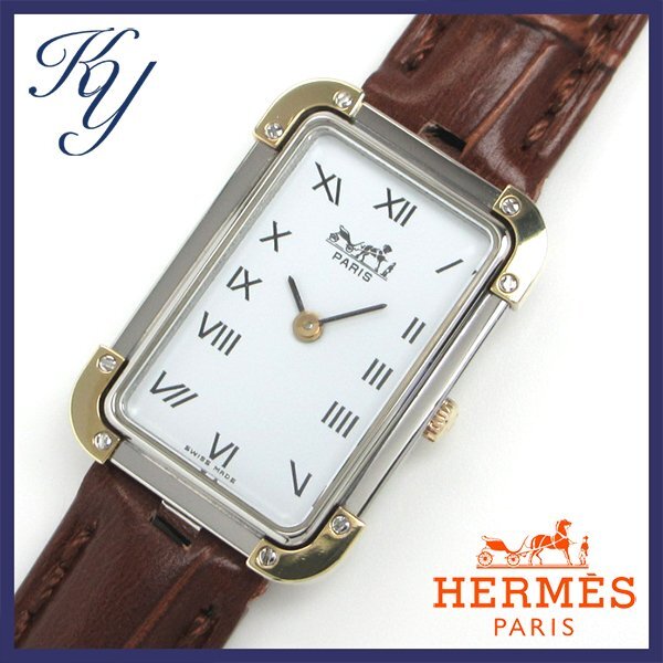 - 1円~ 3ヶ月保証付き 磨き済み 美品 本物 HERMES エルメス クロアジュール コンビ 革ベルト ホワイト レディース 時計