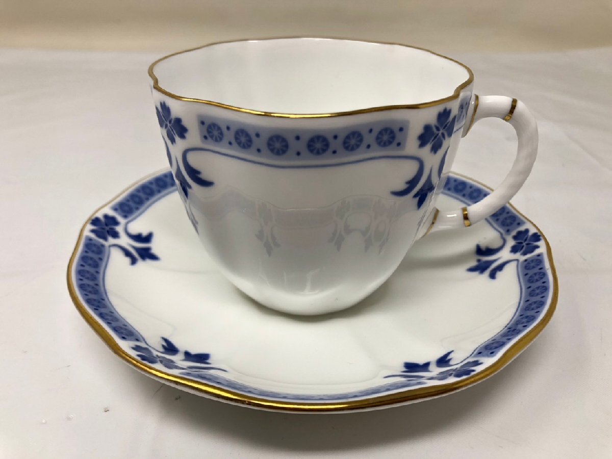 > ◆美品 ロイヤルクラウンダービー RoyalCrownDarby グレンヴィル カップ&ソーサー 花柄 金彩 青 ブルー 中古◆18486★