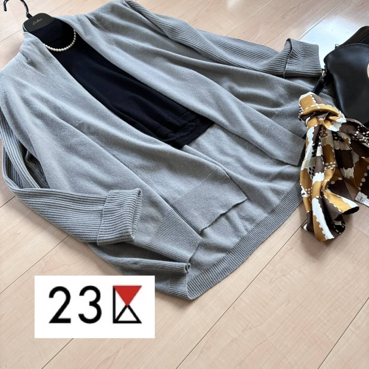 - 【23区、超美品、80%オフ】定価21,000円、高島屋三越伊勢丹取り扱いブランド、マーセライズスーパーファインウールカシミヤカーディガン
