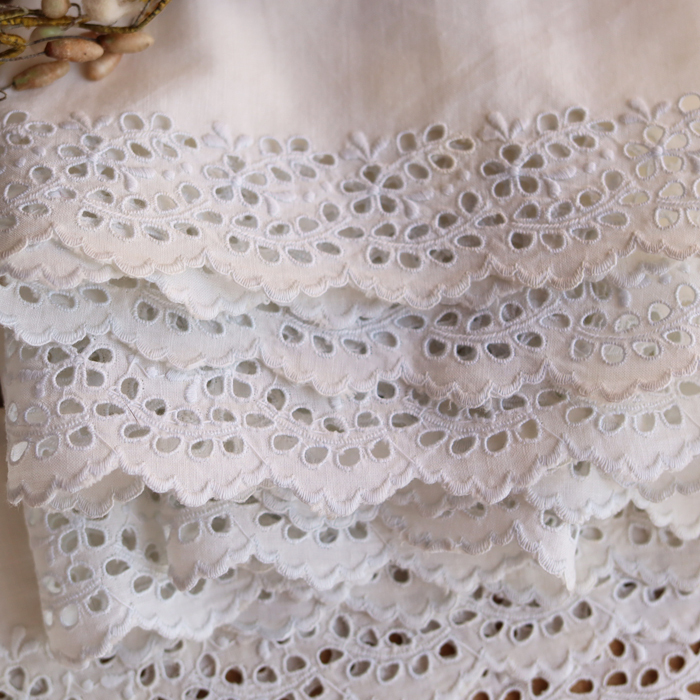 - 【823】390cm!フランス アンティーク レース 1900~1920年代 カットワーク スカラップ 花柄 幅7.5cm オフホワイト ハンドメイドの材料