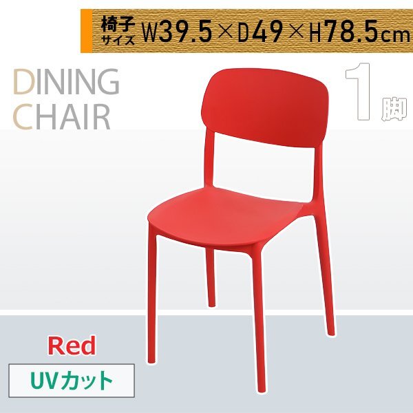 - 送料無料 プラスチックチェア ダイニングチェア ガーデンチェアー 1脚 UVカット レッド 耐荷重約120kg 軽量で持ち運び簡単