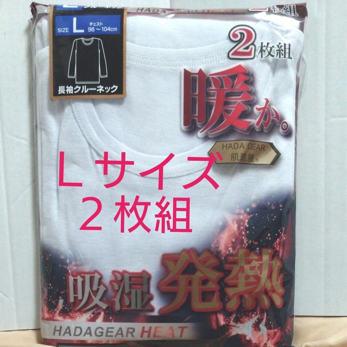 - ①メンズ 紳士 インナーウェア 長袖 クルーネックシャツ 吸湿発熱 Lサイズ 2枚組 ポリエステル65% レーヨン35%