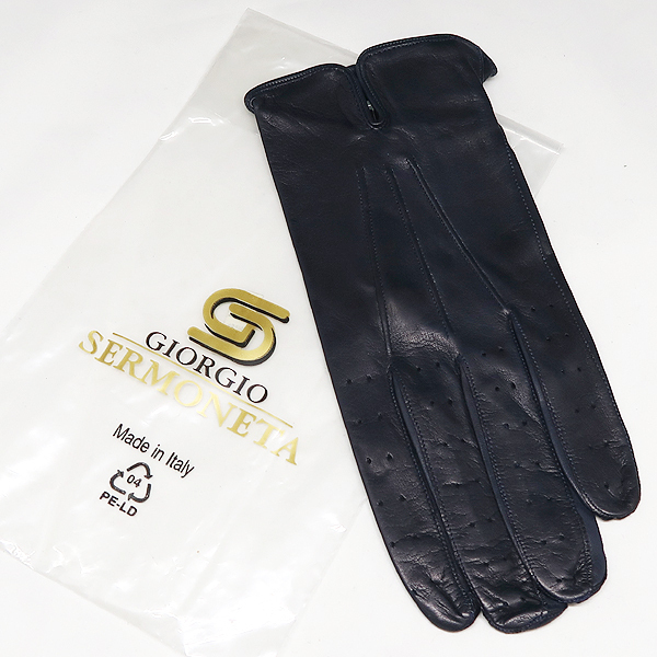 > DKG★送料無料 SG01★ 未使用 SERMONETA セルモネータ グローブス イタリア製 男女兼用 片手 ゴルフ手袋 レザー ゴルフグローブ ネイビー 9