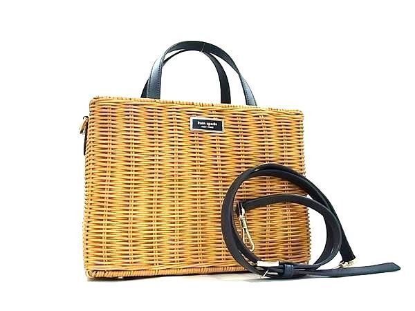 - 1円 kate spade ケイトスペード K6842 ラタン×レザー 2WAY クロスボディ ハンドバッグ ショルダー 斜め掛け ブラウン系 FU4910