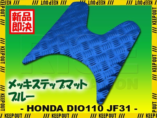 > アルミ調 ステップマット ホンダ ディオ110 JF31 ブルー メッキ バイク ゴムマット ステップボード カスタム DIO110 交換 パーツ 部品