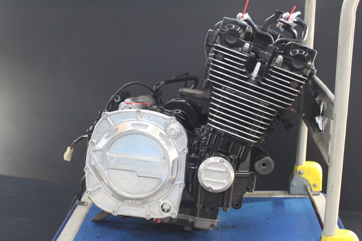 XJR1300(RP03J-0016**)形式BC-RP03Jの走行距離約9600Kmのフルカスタム実動車から取り外しの純正エンジンASSYの中古です。カバー類、ジエネレーター、セルモーター、強化クラッチは別で出品中です。最後の画像はエンジン始動時のものです。キズ、汚れ等ありますがワレ、曲がり等は無く使用可能品です。中古につきノークレーム、ノーリターンでお願いします。他にも同車種、その他車輌からの取り外しの部品を多数出品しますのでご覧ください。発送は 西濃運輸デポ留め着払いのみです。法人様の場合、荷下ろし可能な方のみ直接配送可能です。発送にパレット梱包、デポに持ち込みのため送料とは別に5000円頂きます。