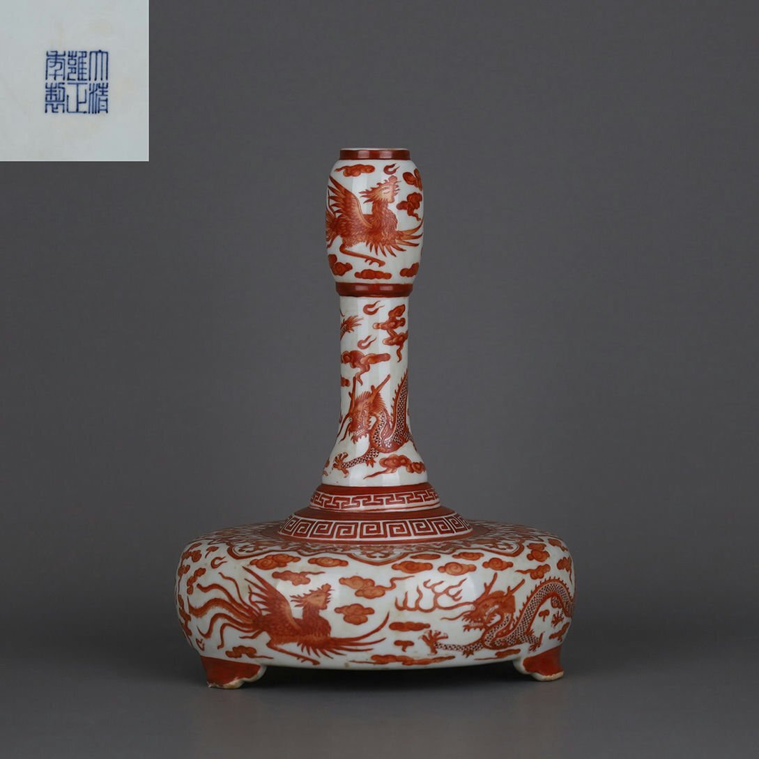 - ▼渡鶴羽▼K6331清雍正 礬紅龍鳳呈祥紋官帽架 ・珍品旧蔵・古賞物・時代物