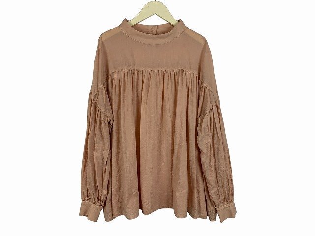 > Whim Gazette / ウィム ガゼット ローバンドカラープルオーバー ギャザーブラウス ボリューム袖 サイズ : F(フリー) ピンク