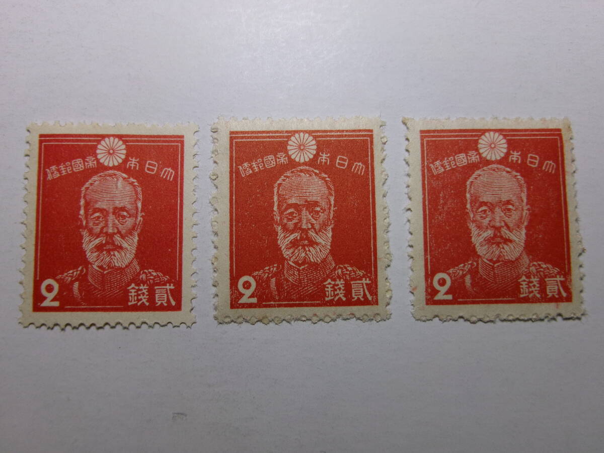 - 1次昭和切手 乃木希典 2銭 輪転版 色違い3枚 未使用 黒-K