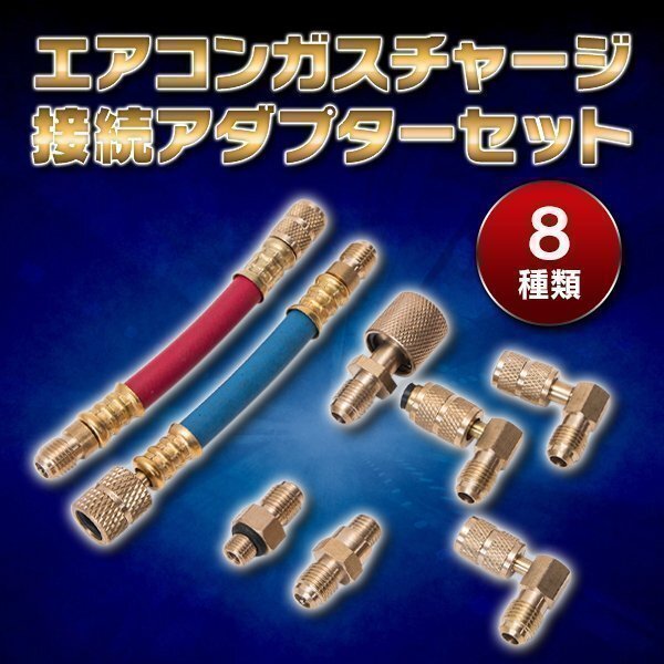 - エアコン ガスチャージ 接続 アダプター 8種類 セット 細口 エルボ アダプターセット ガスチャージャー 外車 旧車 クラシックカー