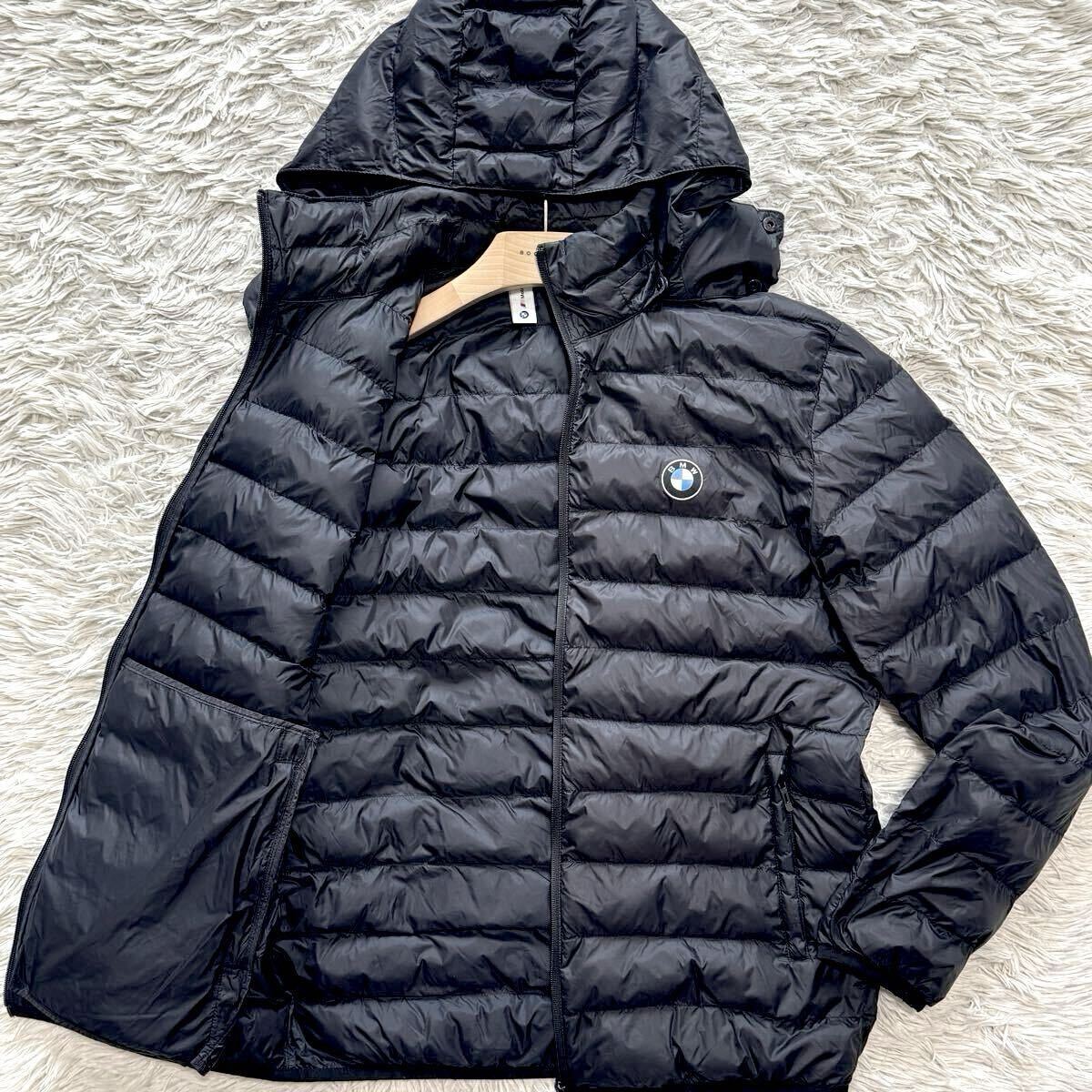 - L 相当 美品【希少コラボ】PUMA × BMW 軽量 2way ダウンジャケット 中綿 フード着脱 ライトダウン 刺繍ロゴ 光沢 ブラック プーマ 極暖◎