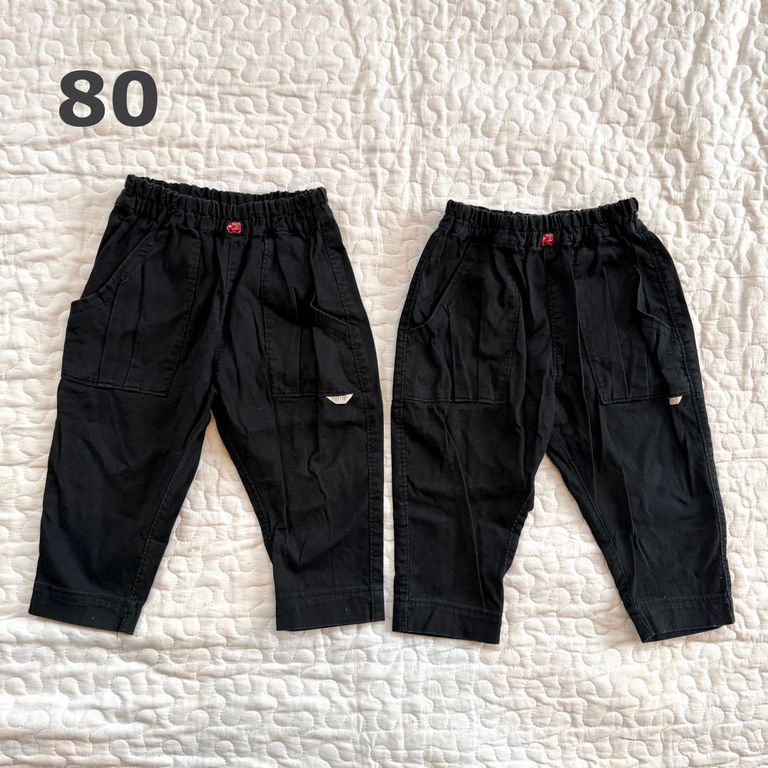 - ベビー パンツ サイズ80 双子 黒 無地 テーバードパンツ 秋冬 ズボン