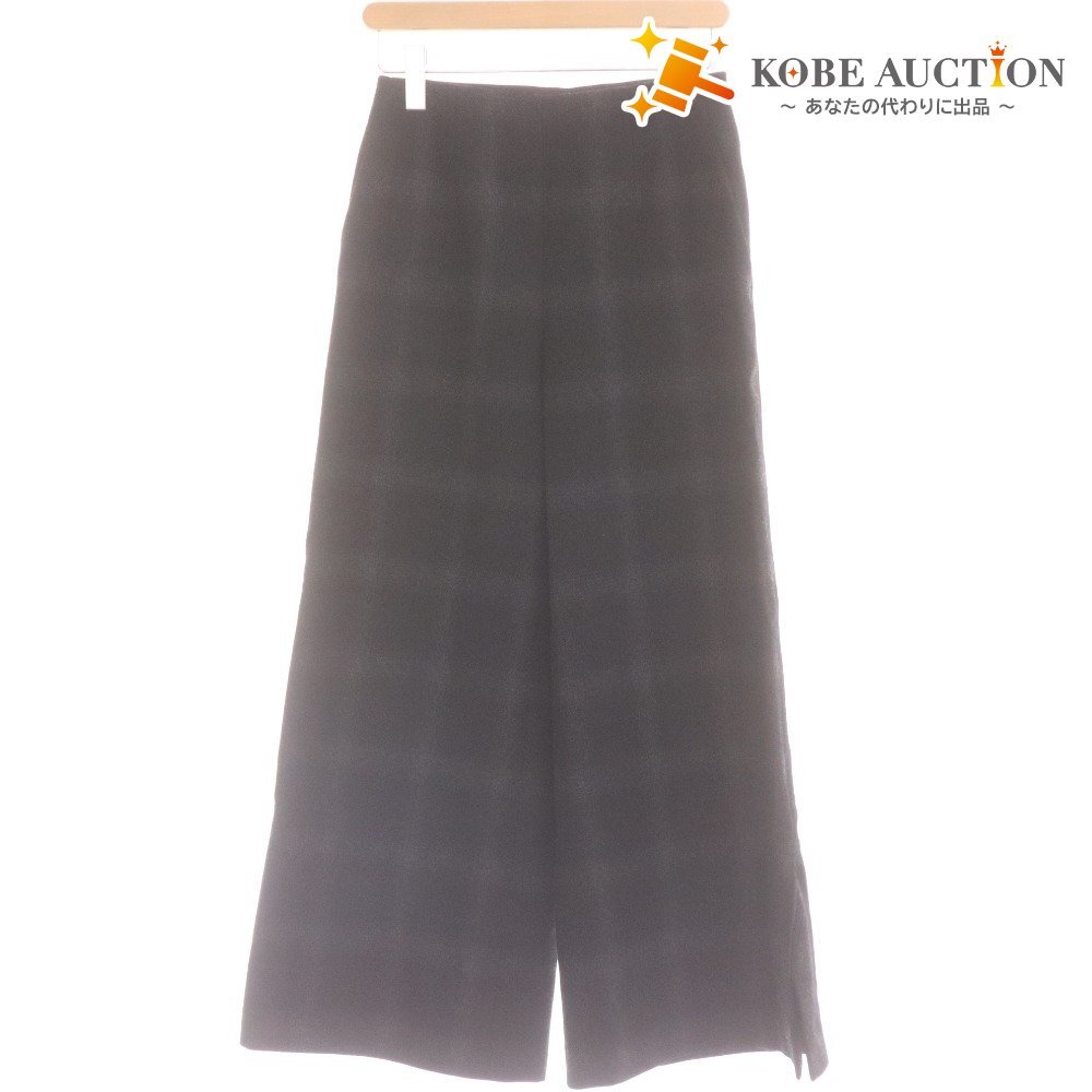 > ■ アドーア パンツ ボトムス チェック ワイド 裾スリット レディース 36 (S相当) ブラック