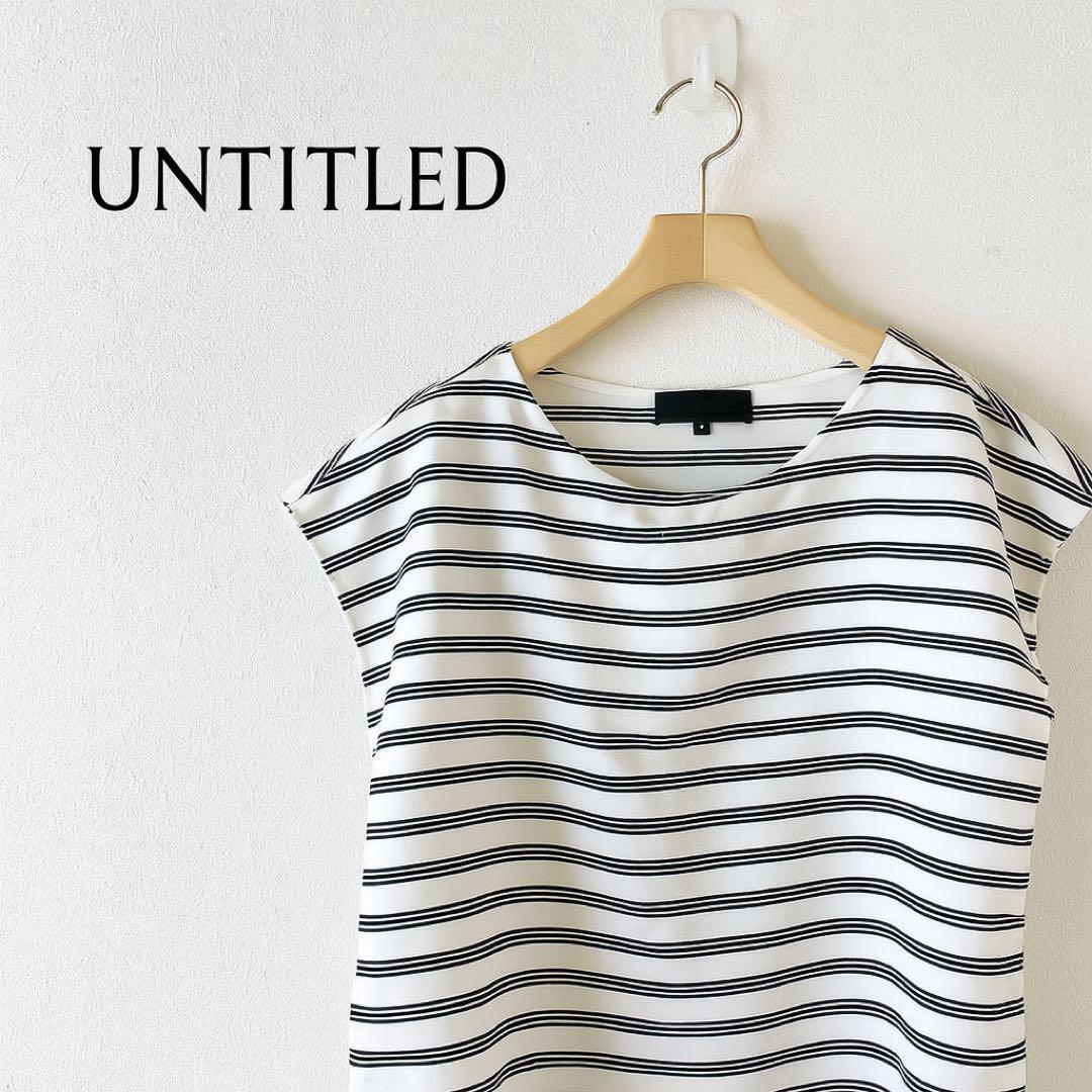 > 100円スタート UNTITLED リネン混 ボーダーブラウス サイズ4 ナチュラル トップス 白 LL XL ゆったり きれいめ カジュアル WORLD