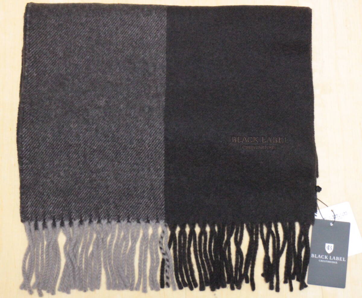 > ブラックレーベルクレストブリッジ新品マフラーブラウン*アッシュブラウンバイカラーデザイン切返し極上カシミヤ混ウール尾州織日本製