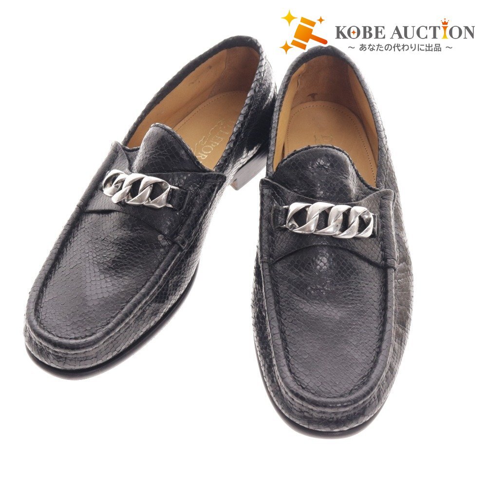 > ■ ダニエル・レポリ チェーンビットローファー ローファー 靴 シボ皮 シルバーチェーン メンズ 27 EU42 ブラック 箱付き