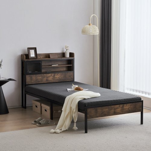 - S ベッドフレーム シングル シングルベッド パイプベッド コンセント付き 宮付き 木 コンセント ベッド 木製 下収納 スチール おしゃれ