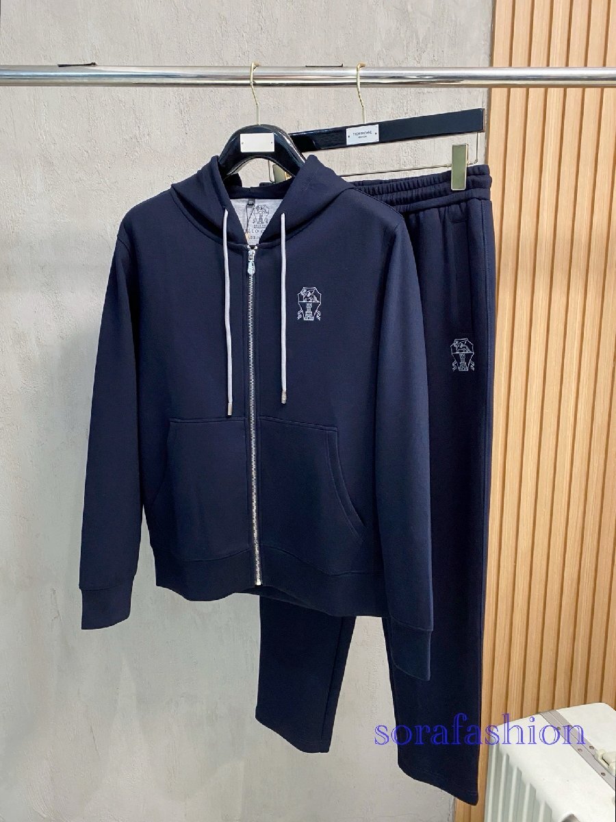 - BRUNELLO CUCINELLIメンズセットアップ 上下2点セット ネイビー 3XL ジャケット ジップアップパーカー ロングパンツ スウェットウェア 秋冬