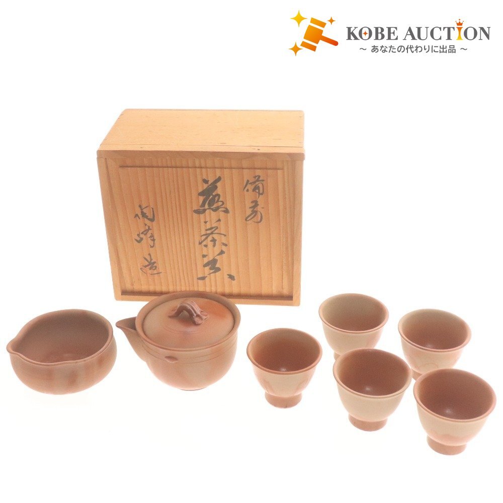 > ■ 木村陶峰 茶器セット 煎茶揃え 7点 急須 湯冷まし 湯呑み/5客 茶道具 陶器 焼き物 食器 和風 箱付き