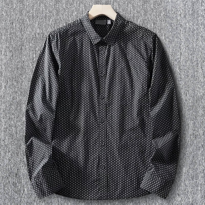 > おしゃれで洋風!国内未販売 新品 メンズ長袖シャツ ポルカドット 高密度コットン ファッション カジュアル 薄手 通気性 /黒T4037-L