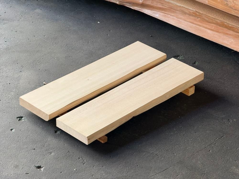 - [東濃ひのき板 2枚セット 片耳 節有 幅60cm×奥行16cm×厚み3cm] 無垢板 材料板 木材 板材 東濃檜 荒材 DIY 一枚板 ヒノキ 桧 G-005011025