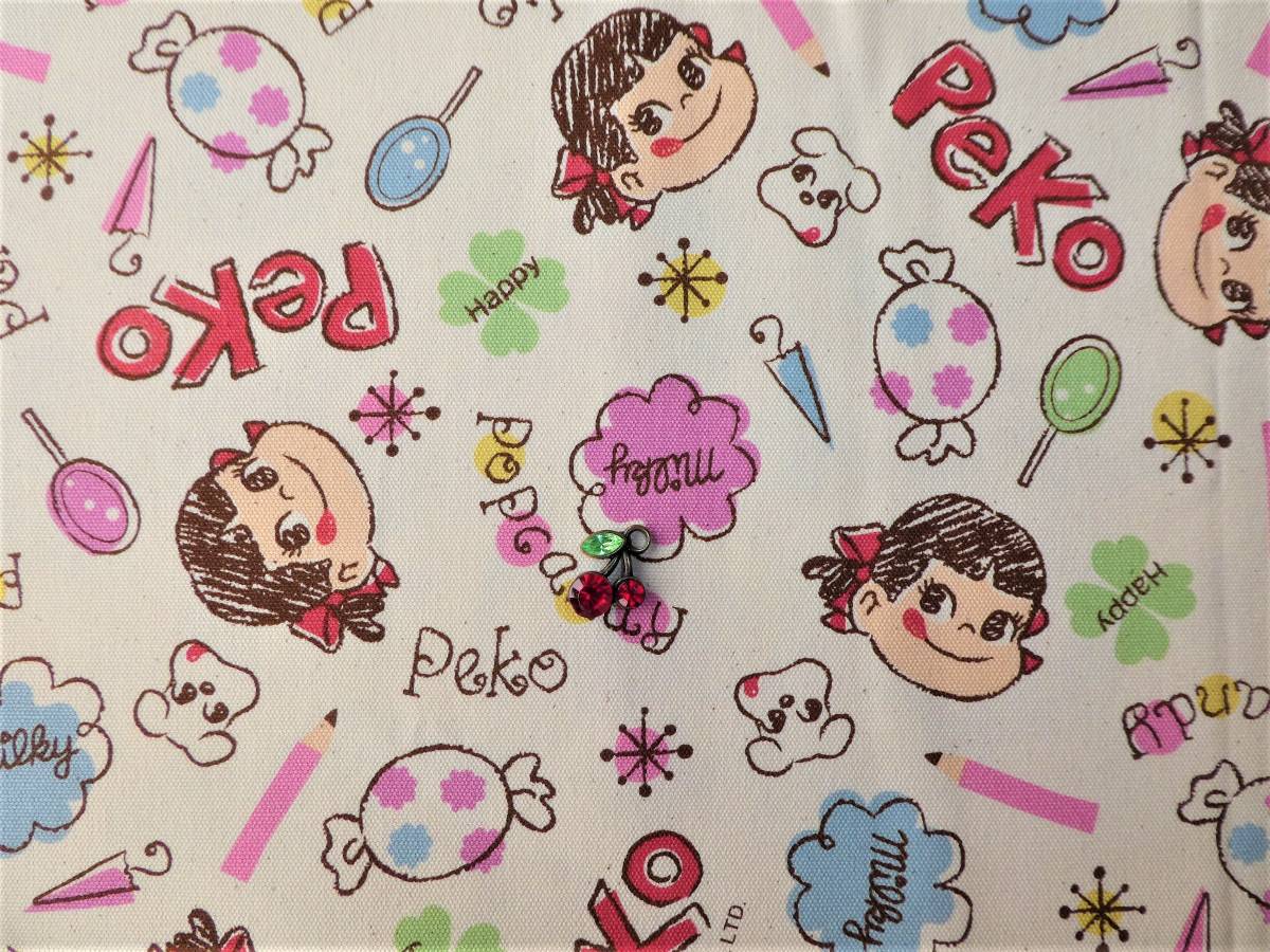 - レア★ペコちゃん 生地オックス生成りピンク★レトロ昭和女の子不二家お菓子Peko