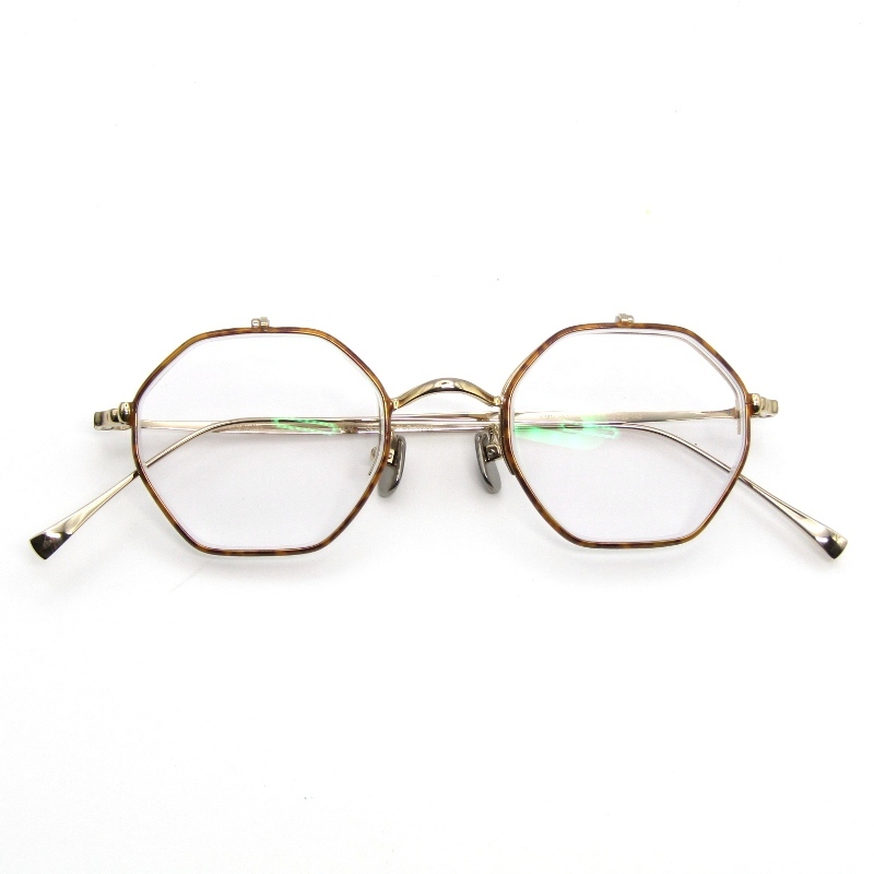- 美品 Kame ManNen カメマンネン メガネフレーム KMN-551 度入り 日本製 ヘキサゴン 六角形 七宝リム GD/HAV ゴールド/ハバナ 65008995