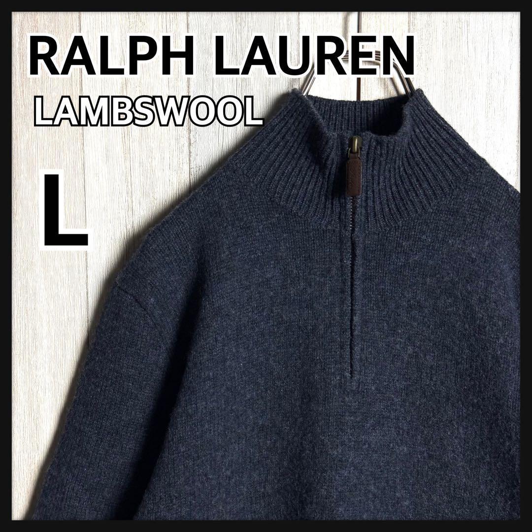 > 【希少デザイン・美品】90s Polo by Ralph Lauren ラルフローレン ラムウール ハーフジップ ニットセーター ネイビー・紺 L