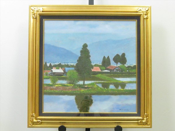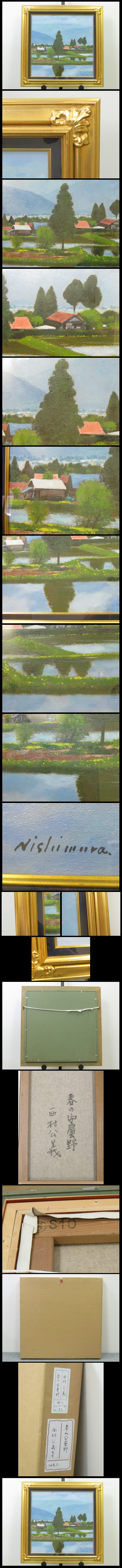 - 【心庵】額装 西村公義「春の安曇野」油彩 S10号 紙タトウ 真作 B178