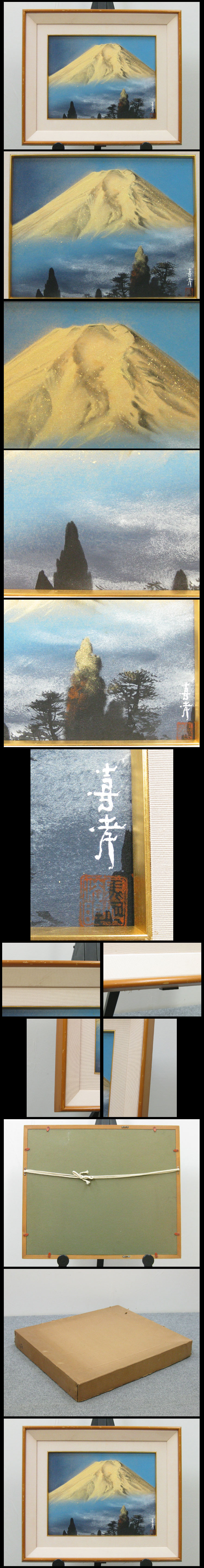 - 【心庵】額装 馬堀喜孝 富士山図 日本画 画寸 29.5×39cm/肉筆 真作 紙箱付 B270