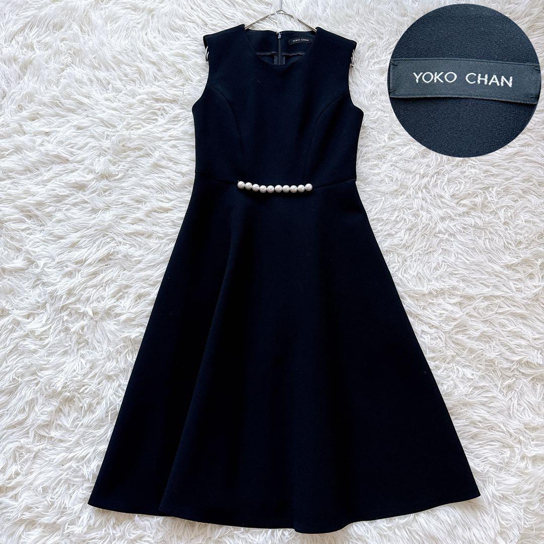 > YOKO CHAN ヨーコチャン パール付きノースリーブワンピース フレア Aライン フォーマル セレモニー ブラック 黒 38 Mサイズ 入学式 卒業式