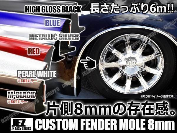 > 送料0円 フェンダーモール 幅:8mm 長:6m [レッド] ビス付き ツライチ ハミタイ ドレスアップ 保護 フェンダー 外装 艶 補修 傷 車 汎用