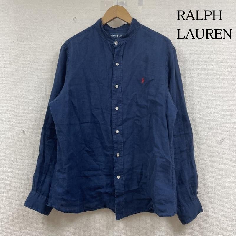 > ラルフローレン 長袖 シャツ ブラウス 麻100% リネン バンドカラー ロゴ ワンポイント 刺繍 XL