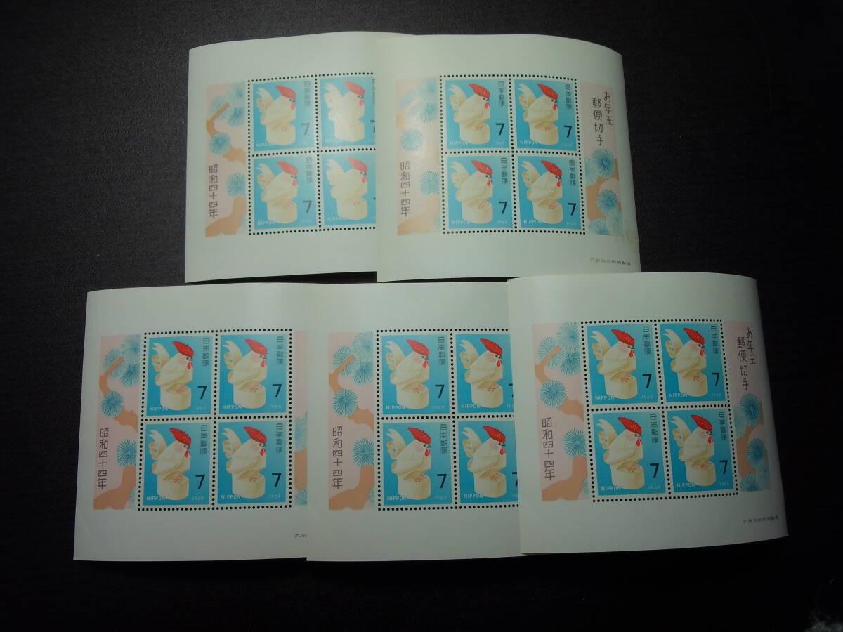 > 年賀切手 ニワトリ 5シート1セット 極美品に近い美品 カタログ値1250円 昭和44年用