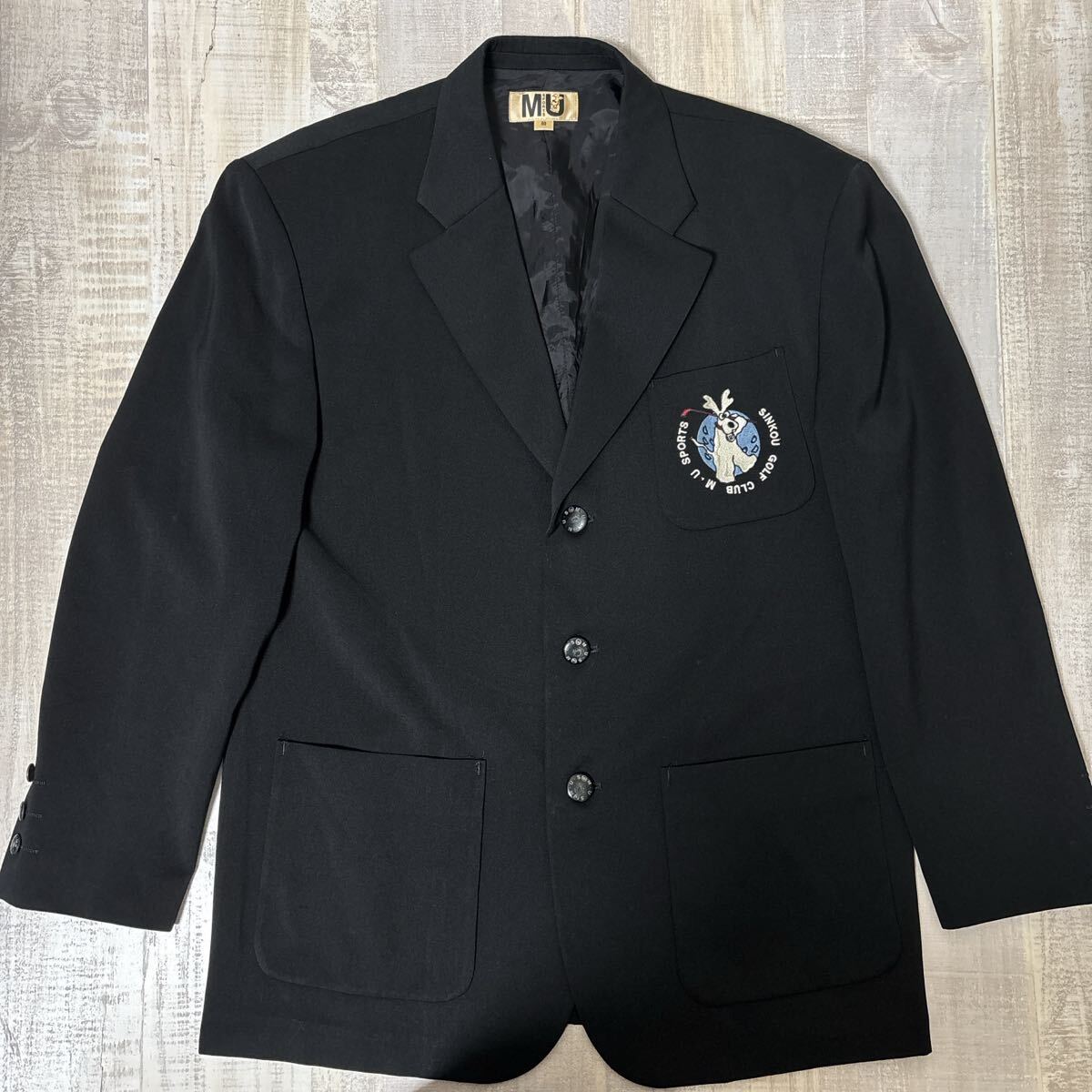 - 【オリジナルボタン 刺繍ロゴ】M・U SPORTS 3B テーラード ジャケット ブレザー ミエコウエサコ スポーツ エムユー ブラック GOLF ゴルフ