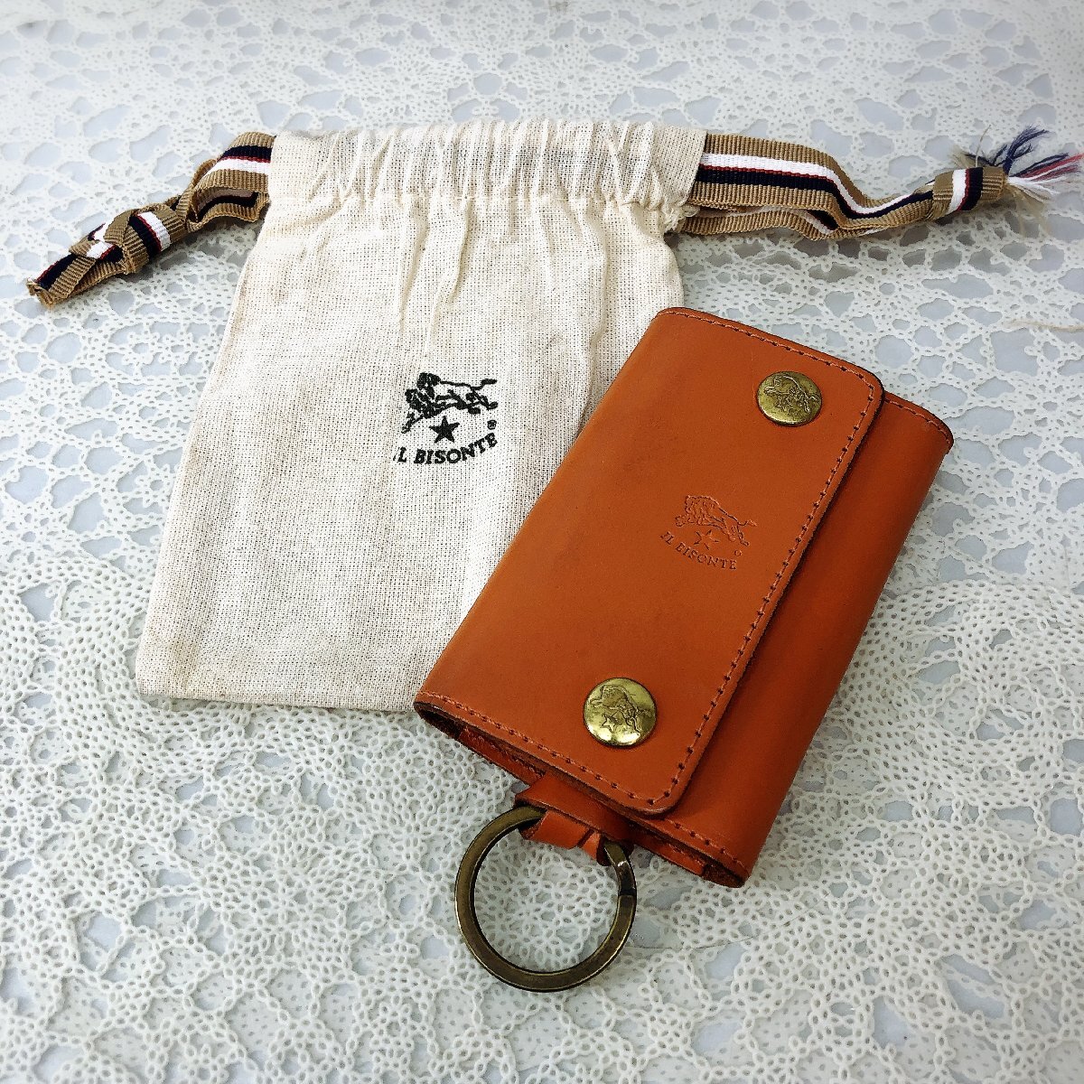 > 【中古品/良品/KU】IL BISONTE イルビゾンテ レザー キーケース 6フック キーリング付 ライトブラウン イタリア製 IM1102/0003