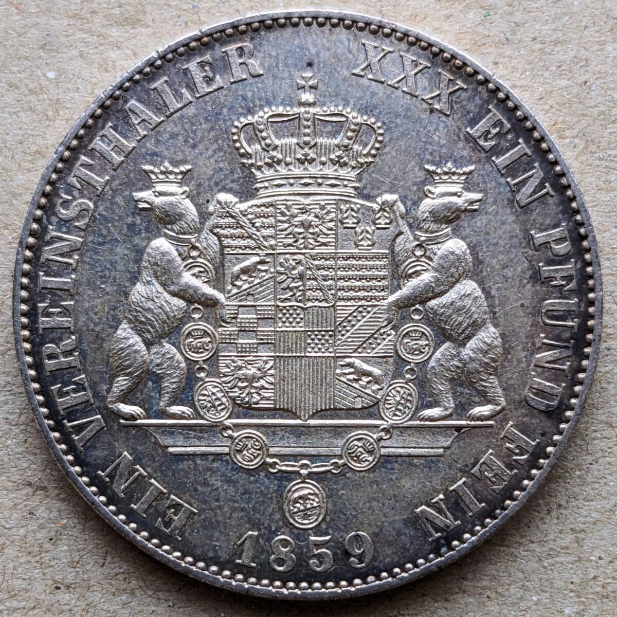- 1859年 アンハルトベルンブルグ ターラー 銀貨 ベルリンミント EF