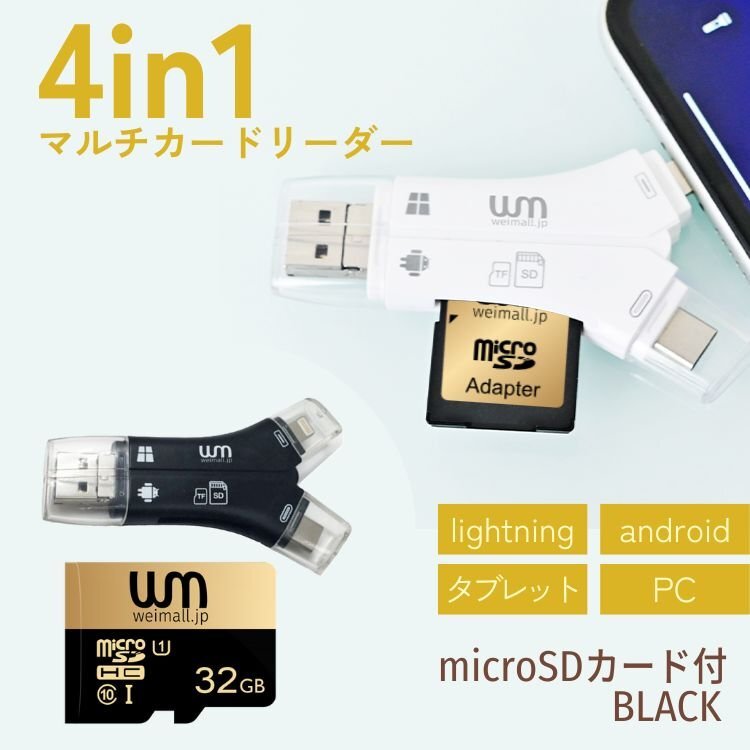 > SDカードリーダー (ブラック) 32GB 対応 USBメモリ 外付け バックアップ マルチカードリーダー データ移行 スマホ 転送 SDカード 新品 未