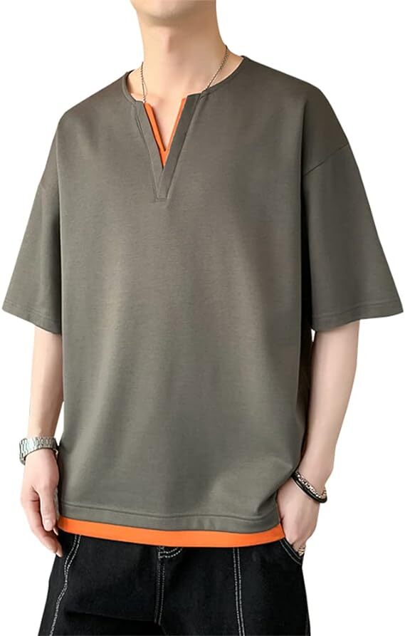 - Tシャツ 夏服 メンズ 半袖 tシャツ カジュアル Vネックビッグ 2XL