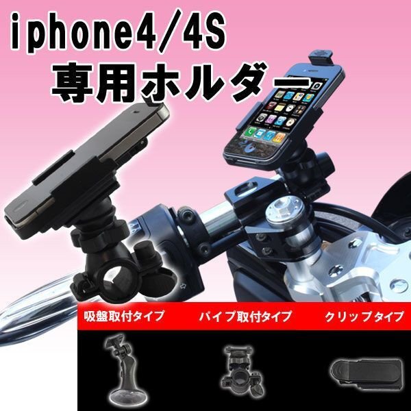 iPhone4/4S専用 バイクハンドルクランプ&吸盤式マルチホルダー拍卖