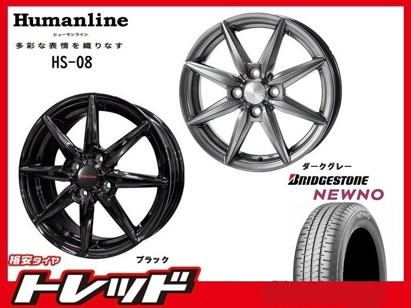 > (数量限定 2023年製)新横浜師岡店 新サマータイヤアルミ4本set ヒューマンライン HS-08 15インチ6.0J5穴100+45 NEWNO 185/65R15